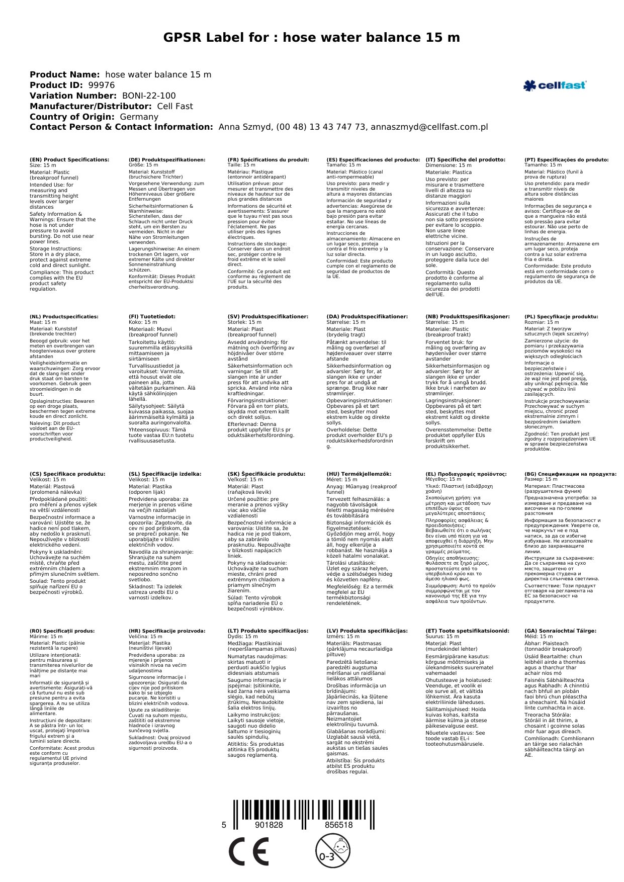 Cevna vodna tehtnica 15m za natančno niveliranje z milimetrsko skalo