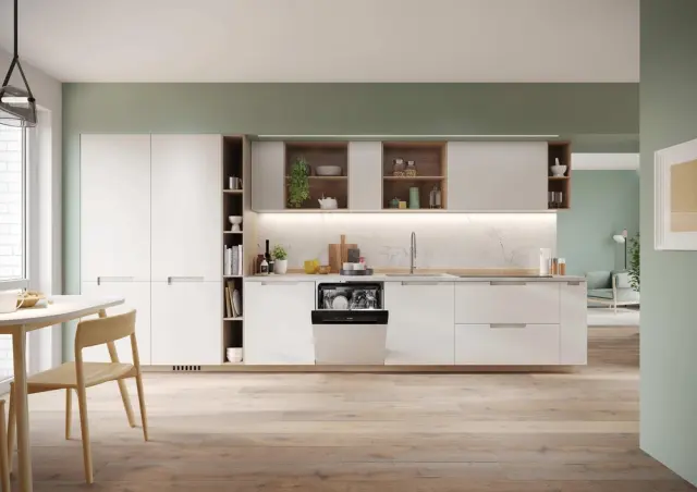 Med fazo sušenja se vrata samodejno odprejo za nekaj centimetrov in tako omogočijo kroženje zraka v pomivalnem stroju ter omogočijo naravno sušenje posode. Trajanje izbranega cikla se bo spremenilo, da bo omogočilo optimizacijo temperatur, uporabljenih med fazo izpiranja, in zagotovilo znatno zmanjšanje porabe energije.