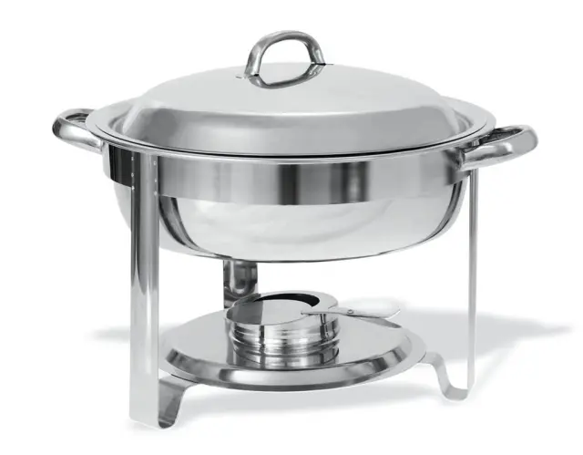 CHAFING grelna posoda okrogla 7,5l Okrogla chafing grelna posoda s prostornino 7,5l. Odlična je za ohranjanje vnaprej pripravljene hrane tople in sveže. Izdelana je iz kvalitetnega nerjavečega jekla, ki je enostavno za čiščenje.