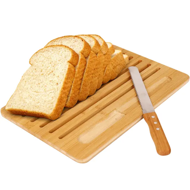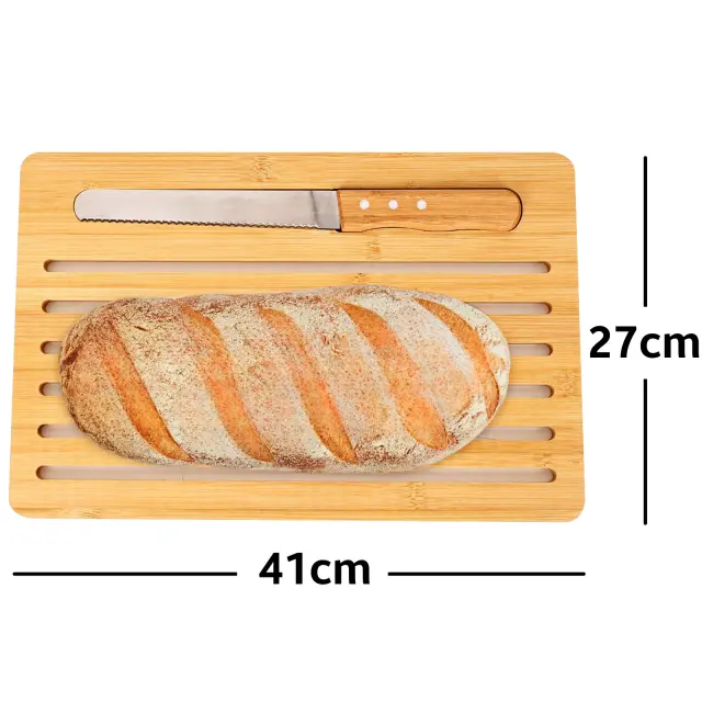 Cheffinger, Deska za rezanje kruha z nožem iz bambusa 41x27cm, enostavno rezanje, Marron / Beige
