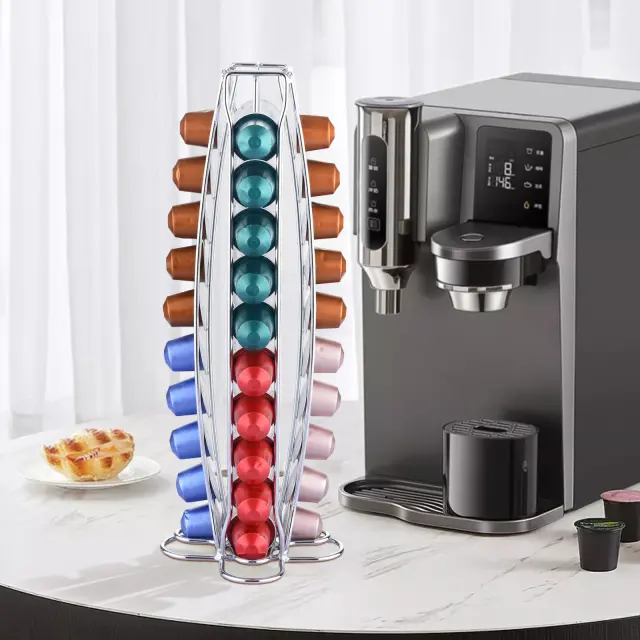 Vanj lahko shranite do 40 kapsul Nespresso, kar zagotavlja dovolj prostora za shranjevanje. Kapsule so lepo razporejene in lahko dostopne. 360-stopinjsko vrtenje pomeni, da lahko brez težav izberete najljubšo kapsulo. Njegova široka podlaga zagotavlja dobro stabilnost.