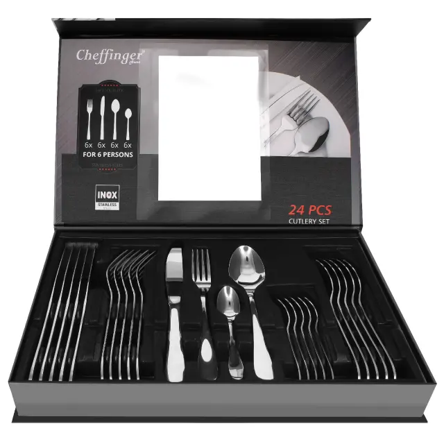 Cheffinger, Elegantni set pribora za 6 oseb s 24 kosi, Srebrna