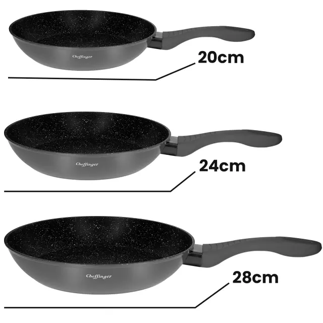 Kamnita prevleka zagotavlja odlično delovanje proti prijemanju. Odpornost na praske in obrabo, kar zagotavlja dolgo življenjsko dobo. Silikonski ročaji z mehkim dotikom zagotavljajo udoben in varen oprijem, tudi ko so ponve vroče.. Primeren za vse vrste štedilnikov, vključno z indukcijskimi, kar zagotavlja veliko vsestranskost..