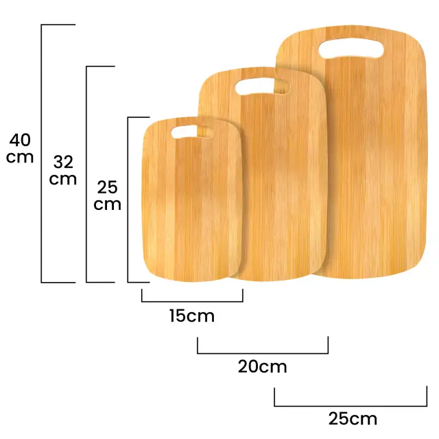 Cheffinger, Komplet 3 ultra trpežnih bambusovih desk za rezanje Ekološki, Svetlo rjava