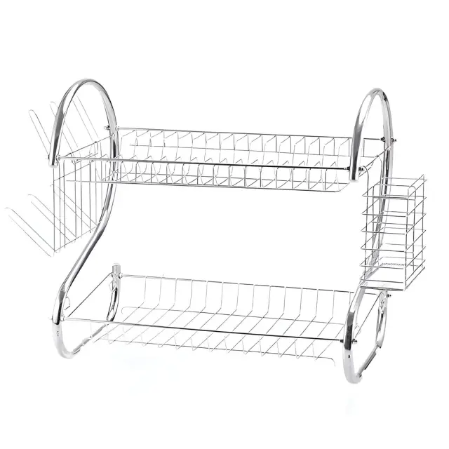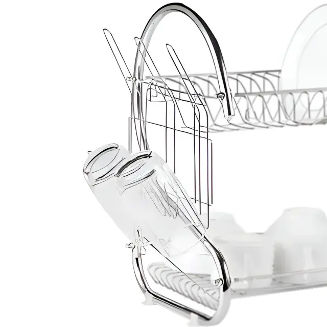 Ta odcejalnik za posodo združuje eleganco in praktičnost. Zasnovan je za sušenje krožnikov, skodelic, kozarcev in pribora.. Odcejalnik ima dve ravni za optimalno organizacijo. Trdna jeklena konstrukcija zagotavlja dolgo življenjsko dobo in je odporna na rjo..