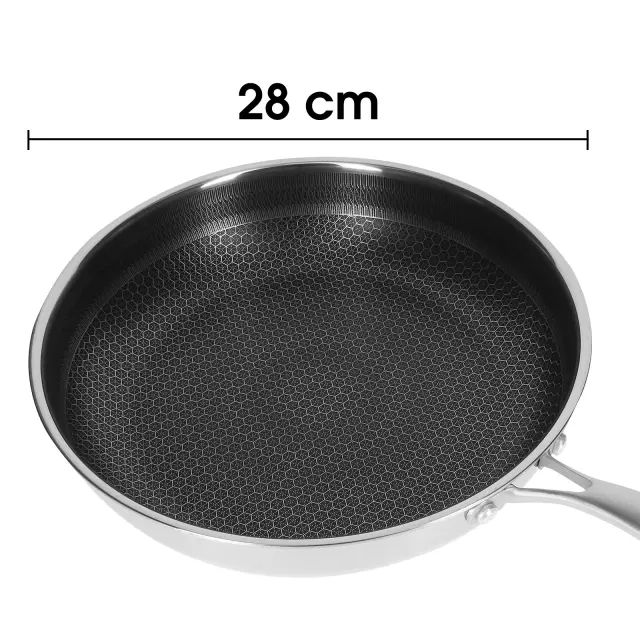 Ponev je vse, kar potrebujete za priročno kuhanje. Zaradi notranjosti, ki se ne prijema, mešanje v ponvi s kovinskimi pripomočki ni nobena težava.. Ročaj je hladen na dotik za varno rokovanje.. Notranja obloga ima vzorec satovja, ki peči daje edinstven estetski videz..