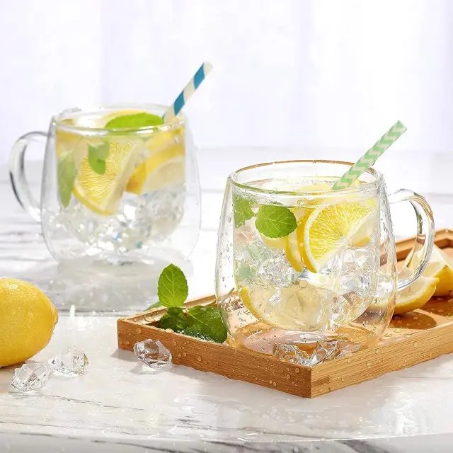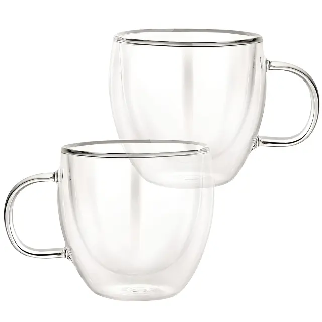 Cheffinger, Set 2 kozarcev z ročajem z dvojno steno 250ml iz borosilikatnega stekla, Prozorno
