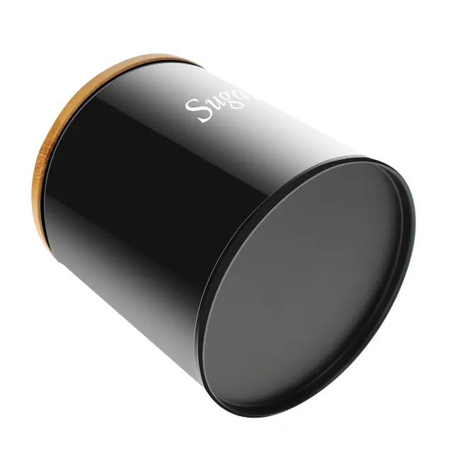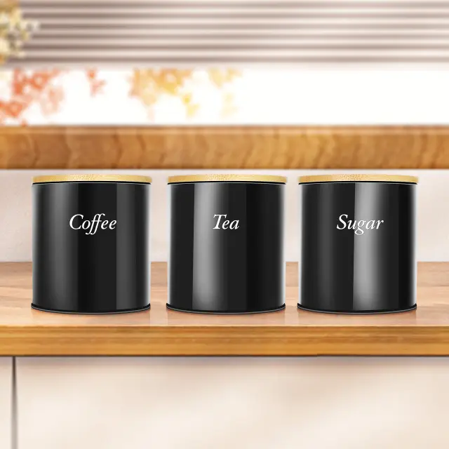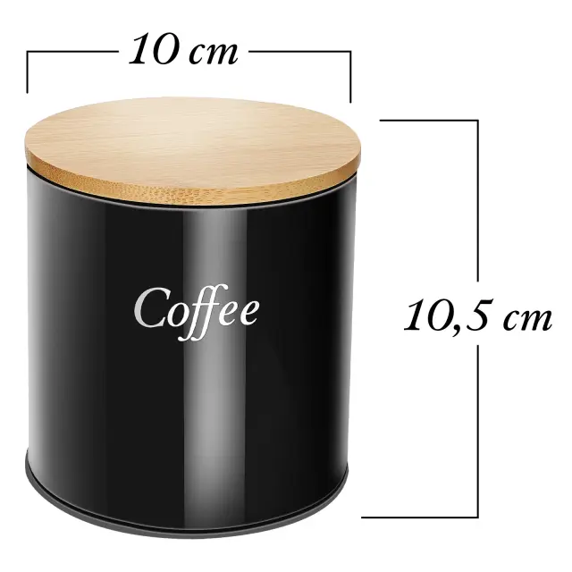 Cheffinger, Set 3 škatel iz nerjavečega jekla z bambusovim pokrovom za kavo, sladkor, čaj, Noir / Marron