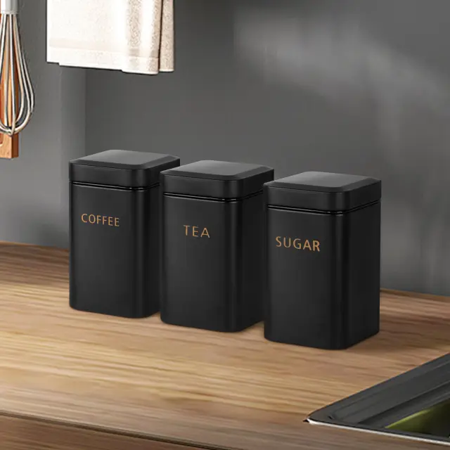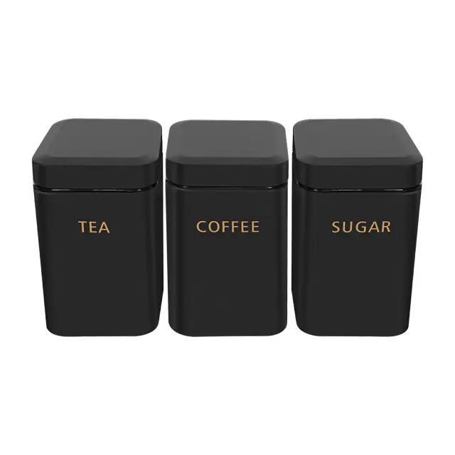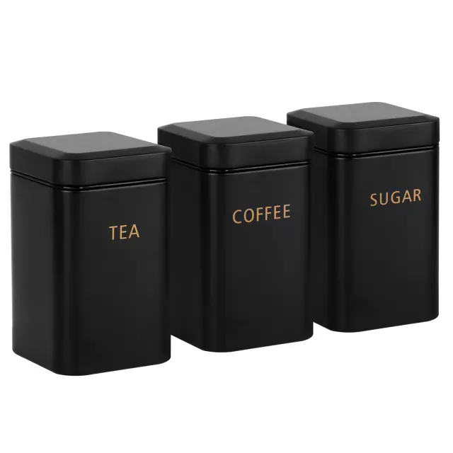 Cheffinger, Set 3 škatel za čaj, kavo, sladkor 9x14,5cm, hermetično zaprte, Črna