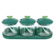 Prozorni stekleni kozarci so estetski in omogočajo takojšen vpogled v vsebino.. Hermetično zaprti pokrovi ohranjajo začimbe sveže, vgrajene žličke pa olajšajo odmerjanje.. S pladnjem lahko tri lonce združite v skupine in jih enostavno premikate.. Idealno za majhne kuhinje ali za tiste, ki želijo kar najbolje izkoristiti svoj prostor.
