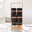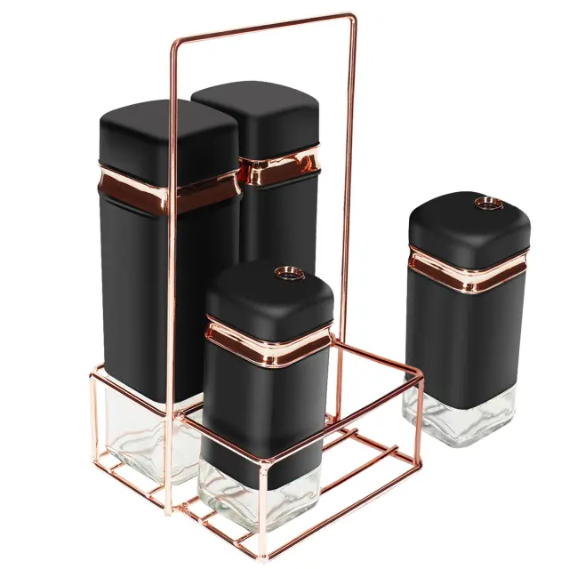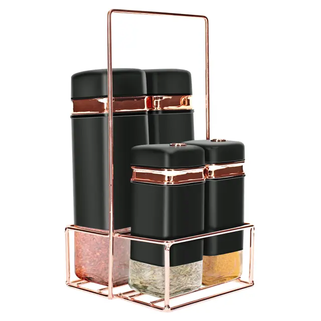 Cheffinger, Set 4 posod za začimbe z elegantnim, trdnim kovinskim stojalom, Črna