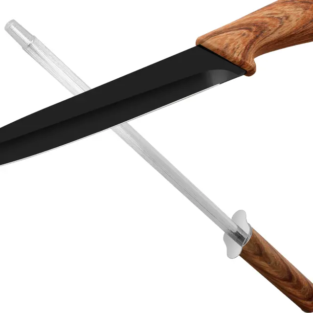 Ta komplet nožev pokriva vse vaše kuhinjske potrebe, saj vsebuje sekač, kuharski nož, nož za kruh, kuhinjski nož, nož za obrezovanje, brusilnik in dleta.. Priloženo stojalo prihrani prostor na delovni mizi, zato so vedno urejeni in pospravljeni.. Ti noži so izdelani iz keramike in zagotavljajo boljšo kakovost rezanja, njihova rezila pa ostanejo ostra dolgo časa, ne da bi spremenila okus sestavin.. Z nedrsečimi lesenimi ročaji imajo elegantno obliko, ki dopolnjuje vašo delovno površino..