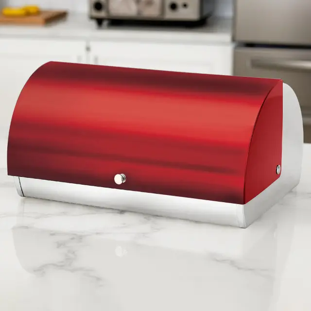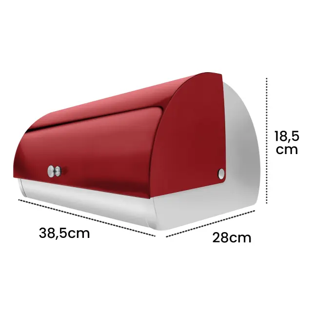 Cheffinger, Škatla za kruh iz nerjavečega jekla 38.5x28x18.5cm z zložljivim pokrovom, Rdeča