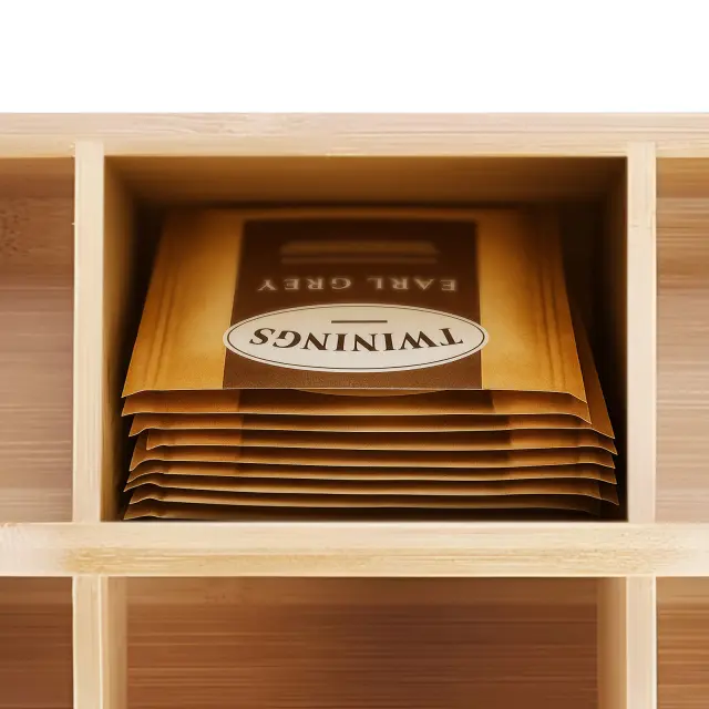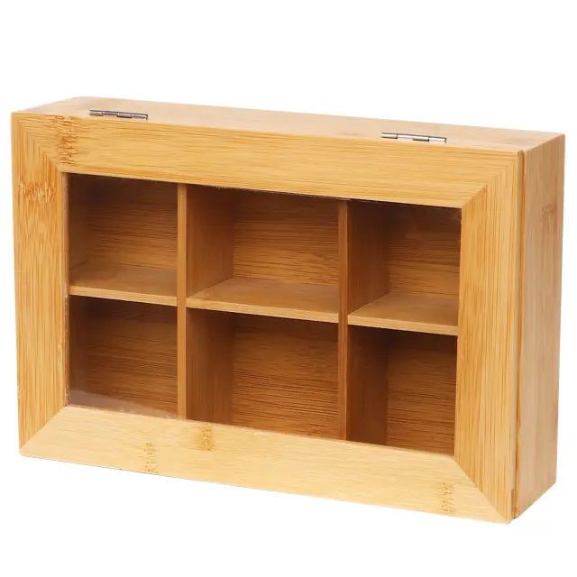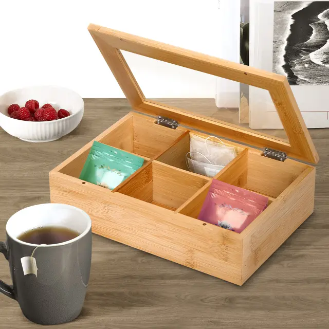 Cheffinger, Steklena škatla za čaj 6 elegantnih in praktičnih predalov za shranjevanje, Svetlo rjava