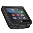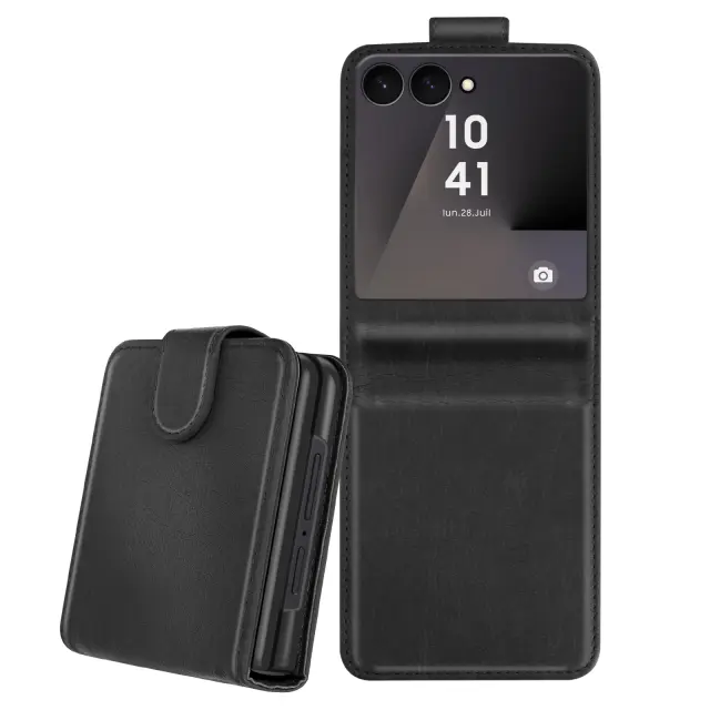 To ohišje je opremljeno z magnetnim zapiralom, ki zagotavlja varnost in hitrost uporabe.. Vgrajeno držalo za kartice za enostavno shranjevanje osnovnih kartic. Obstojno zrnato umetno usnje z elegantnim občutkom. Oblikovanje, prilagojeno zložljivemu formatu telefona Samsung Galaxy Z Flip 7.