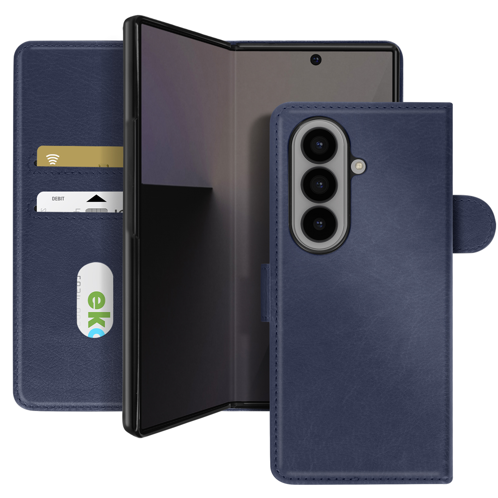 Ta etui ima magnetno zaklopko za enostavno in učinkovito zapiranje.. Vgrajene reže za kartice za praktično uporabo brez denarnice. Zrnati imitaciji usnja za vrhunski in trpežen videz. Oblika, prilagojena zložljivi zasnovi telefona Samsung Z Fold 7.
