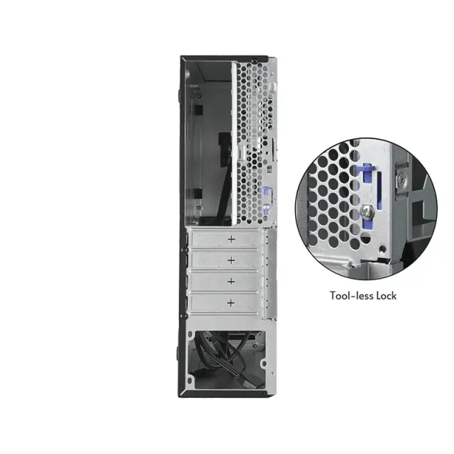Sprednji priključki: 2x USB3.2 Gen 1, 2x USB2.0, Audio-out (AZALIA / HD-Audio), Mic-In, Reset
