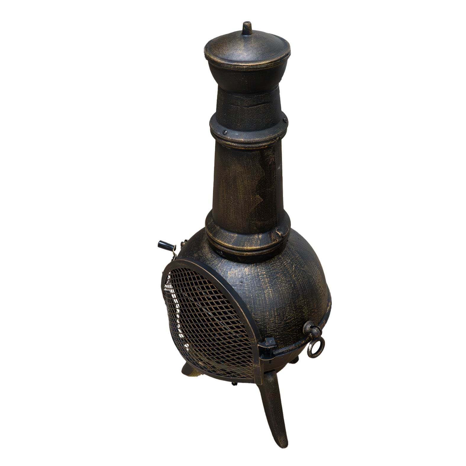 Poleg svoje vsestranskosti ta chiminea vključuje stojalo za žar in poker, zaradi česar je popoln za organizacijo vrhunske vrtne zabave. Ne glede na to, ali pečete marshmallowe, pečete svojo najljubšo hrano na žaru ali preprosto uživate v prijetnem ambientu prasketajočega ognja, ta chiminea vas pokriva.