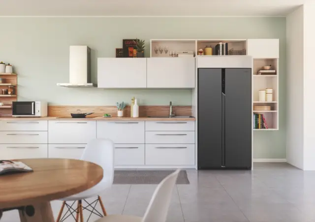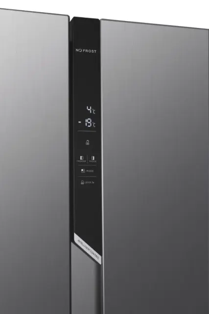 Uživajte v pridihu sodobnega sloga in priročnosti z elektronskim zaslonom na dotik, ki je brezhibno integriran v ročaj. Ta intuitivni vmesnik omogoča enostavno prilagajanje temperature hladilnika in zamrzovalnika, ne da bi morali odpreti vrata.