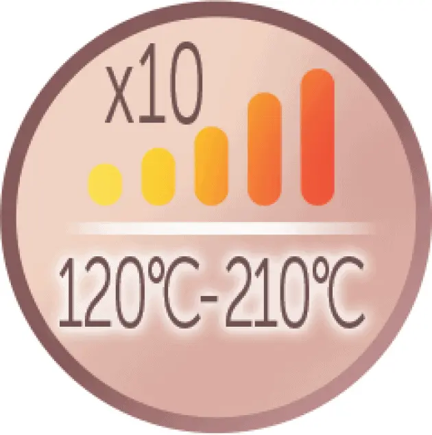 Kodralnik ima integriran digitalni zaslon, ki vam prikaže delovno temperaturo na vašem aparatu. Izbirate lahko med 10 nastavitvami temperature od 120°C do 210°C in izbiro prilagodite želeni pričeski.