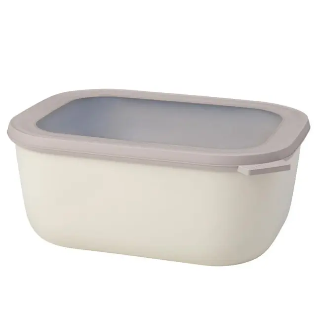 MEPAL CIRQULA (3 L) - pravokotna multifunkcionalna skleda s pokrovom v nordijsko beli barvi je popolna za shranjevanje svežih živil ali že pripravljene hrane. Ta velikost je idealna za shranjevanje večje količine juhe, mesa in solat. Linija »Cirqula« nizozemske blagovne znamke Mepal je zasnovana za popoln »krog uporabe« (ang. circle of use) – od shranjevanja živil v zmrzovalniku in hladilniku, segrevanja hrane v mikrovalovni pečici (brez pokrova), do serviranja neposredno na mizi. Cirqula je narejena iz neuničljivega materiala (brez BPA), prosojno okence na njenem pokrovu pa omogoča vpogled v shranjeno vsebino. Ravno ta inovativen, mehak pokrov omogoča zrakotesno in nepropustno zapiranje brez polivanja. Hrana bo dlje časa ohranjala svežino, skledico pa lahko vzamete tudi s seboj na pot. Mepal Cirqula posodice v različnih velikostih in oblikah so praktične in enostavne za shranjevanje, saj jih lahko postavite eno navrh druge, ko so polne, ali zložite skupaj, ko so prazne. Čiščenje posodic je enostavno, primerne so tudi za pomivalni stroj.