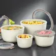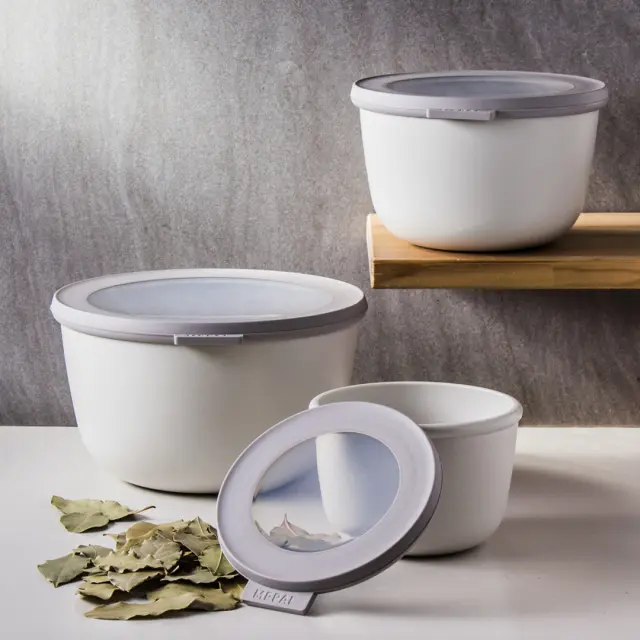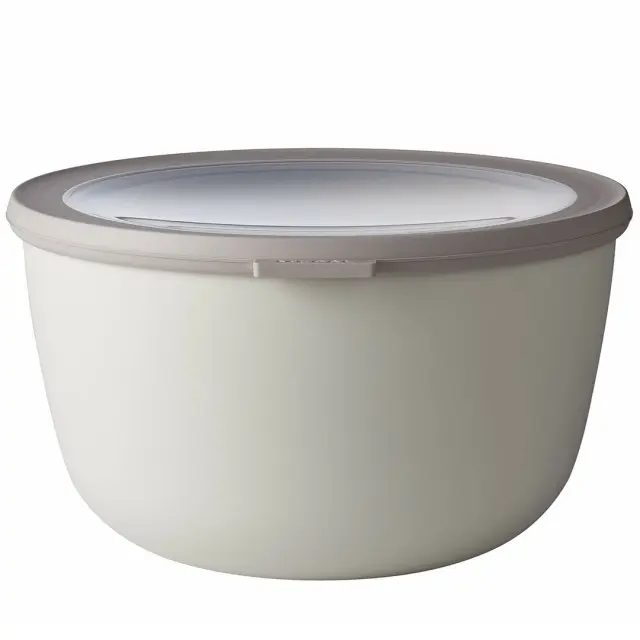 MEPAL CIRQULA (3 L) - multifunkcionalna skleda s pokrovom v nordijsko beli barvi je popolna posoda za shranjevanje svežih živil ali že pripravljene hrane. Ta velikost je idealna za shranjevanje večjih porcij obrokov in solat. Linija »Cirqula« nizozemske blagovne znamke Mepal je zasnovana za popoln »krog uporabe« (ang. circle of use) – od shranjevanja živil v zmrzovalniku in hladilniku, segrevanja hrane v mikrovalovni pečici (brez pokrova), do serviranja neposredno na mizi. Cirqula je narejena iz neuničljivega materiala (brez BPA), prosojno okence na njenem pokrovu pa omogoča vpogled v shranjeno vsebino. Ravno ta inovativen, mehak pokrov omogoča zrakotesno in nepropustno zapiranje brez polivanja. Hrana bo dlje časa ohranjala svežino, skledico pa lahko vzamete tudi s seboj na pot. Mepal Cirqula posodice v različnih velikostih in oblikah so praktične in enostavne za shranjevanje, saj jih lahko postavite eno navrh druge, ko so polne, ali zložite skupaj, ko so prazne. Čiščenje posodic je enostavno, primerne so tudi za pomivalni stroj.