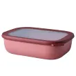 MEPAL CIRQULA (2 L) - pravokotna multifunkcionalna skleda s pokrovom v barvi sleza (bordo) je popolna za shranjevanje svežih živil ali že pripravljene hrane. Ta velikost je idealna za večjo porcijo juhe, mesa in solat. Linija »Cirqula« nizozemske blagovne znamke Mepal je zasnovana za popoln »krog uporabe« (ang. circle of use) – od shranjevanja živil v zmrzovalniku in hladilniku, segrevanja hrane v mikrovalovni pečici (brez pokrova), do serviranja neposredno na mizi. Cirqula je narejena iz neuničljivega materiala (brez BPA), prosojno okence na njenem pokrovu pa omogoča vpogled v shranjeno vsebino. Ravno ta inovativen, mehak pokrov omogoča zrakotesno in nepropustno zapiranje brez polivanja. Hrana bo dlje časa ohranjala svežino, skledico pa lahko vzamete tudi s seboj na pot. Mepal Cirqula posodice v različnih velikostih in oblikah so praktične in enostavne za shranjevanje, saj jih lahko postavite eno navrh druge, ko so polne, ali zložite skupaj, ko so prazne. Čiščenje posodic je enostavno, primerne so tudi za pomivalni stroj.