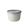 MEPAL CIRQULA (500 ml) - multifunkcionalna skleda s pokrovom v nordijsko beli barvi je popolna posoda za shranjevanje svežih živil ali že pripravljene hrane. Ta velikost je idealna za shranjevanje solat in narezane zelenjave. Linija »Cirqula« nizozemske blagovne znamke Mepal je zasnovana za popoln »krog uporabe« (ang. circle of use) – od shranjevanja živil v zmrzovalniku in hladilniku, segrevanja hrane v mikrovalovni pečici (brez pokrova), do serviranja neposredno na mizi. Cirqula je narejena iz neuničljivega materiala (brez BPA), prosojno okence na njenem pokrovu pa omogoča vpogled v shranjeno vsebino. Ravno ta inovativen, mehak pokrov omogoča zrakotesno in nepropustno zapiranje brez polivanja. Hrana bo dlje časa ohranjala svežino, skledico pa lahko vzamete tudi s seboj na pot. Mepal Cirqula posodice v različnih velikostih in oblikah so praktične in enostavne za shranjevanje, saj jih lahko postavite eno navrh druge, ko so polne, ali zložite skupaj, ko so prazne. Čiščenje posodic je enostavno, primerne so tudi za pomivalni stroj.