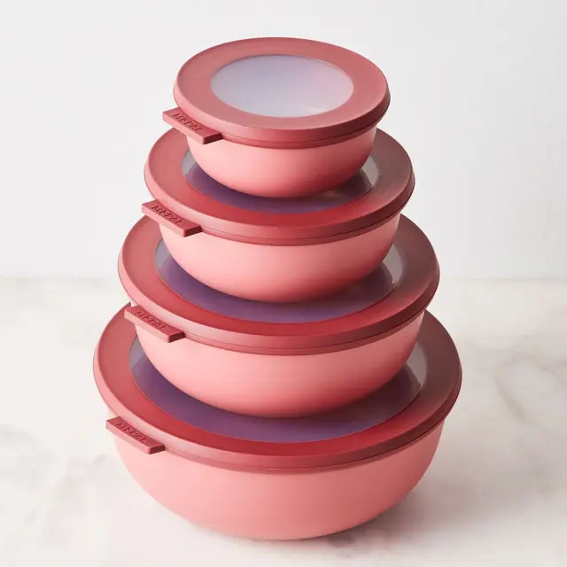 MEPAL CIRQULA (350 ml) - multifunkcionalna skledica s pokrovom v barvi sleza (bordo) je popolna posoda za shranjevanje svežih živil ali že pripravljene hrane. Ta velikost je idealna za shranjevanje humusa, omak, otroških prigrizkov … Linija »Cirqula« nizozemske blagovne znamke Mepal je zasnovana za popoln »krog uporabe« (ang. circle of use) – od shranjevanja živil v zmrzovalniku in hladilniku, segrevanja hrane v mikrovalovni pečici (brez pokrova), do serviranja neposredno na mizi. Cirqula je narejena iz neuničljivega materiala (brez BPA), prosojno okence na njenem pokrovu pa omogoča vpogled v shranjeno vsebino. Ravno ta inovativen, mehak pokrov omogoča zrakotesno in nepropustno zapiranje brez polivanja. Hrana bo dlje časa ohranjala svežino, skledico pa lahko vzamete tudi s seboj na pot. Mepal Cirqula posodice v različnih velikostih in oblikah so praktične in enostavne za shranjevanje, saj jih lahko postavite eno na vrh druge, ko so polne, ali zložite skupaj, ko so prazne. Čiščenje posodic je enostavno, primerne so tudi za pomivalni stroj.