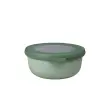 MEPAL CIRQULA (350 ml) - multifunkcionalna skledica s pokrovom v barvi žajblja je popolna posoda za shranjevanje svežih živil ali že pripravljene hrane. Ta velikost je idealna za shranjevanje humusa, omak, otroških prigrizkov … Linija »Cirqula« nizozemske blagovne znamke Mepal je zasnovana za popoln »krog uporabe« (ang. circle of use) – od shranjevanja živil v zmrzovalniku in hladilniku, segrevanja hrane v mikrovalovni pečici (brez pokrova), do serviranja neposredno na mizi. Cirqula je narejena iz neuničljivega materiala (brez BPA), prosojno okence na njenem pokrovu pa omogoča vpogled v shranjeno vsebino. Ravno ta inovativen, mehak pokrov omogoča zrakotesno in nepropustno zapiranje brez polivanja. Hrana bo dlje časa ohranjala svežino, skledico pa lahko vzamete tudi s seboj na pot. Mepal Cirqula posodice v različnih velikostih in oblikah so praktične in enostavne za shranjevanje, saj jih lahko postavite eno na vrh druge, ko so polne, ali zložite skupaj, ko so prazne. Čiščenje posodic je enostavno, primerne so tudi za pomivalni stroj.