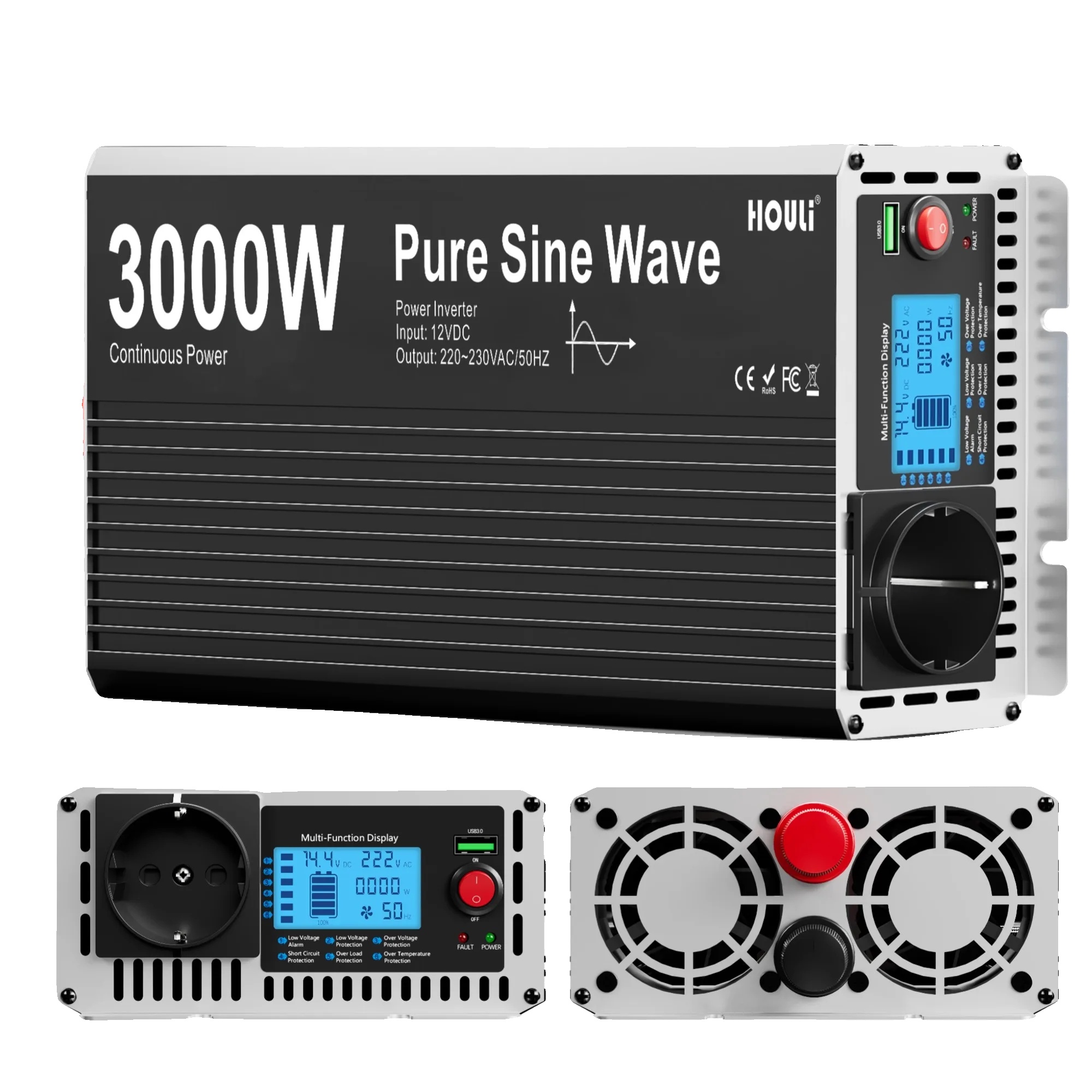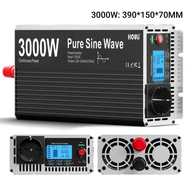 Čisti sinusni inverter, LCD zaslon, daljinski upravljalnik, 3000W, 12V, 220-230V 50hz