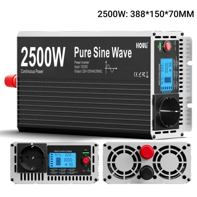 Čisti sinusni inverter, LCD zaslon, daljinski upravljalnik, 2500W, 24V, 220-230V 50hz