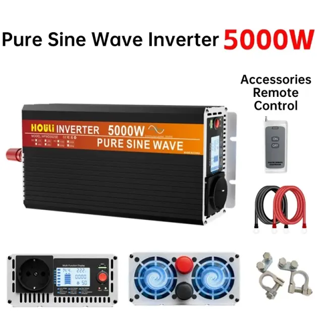 Čisti sinusni inverter, visoka moč 3000W-6000W, združljivost napetosti 12V/24V, 5000W-12V-220V-50HZ