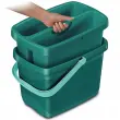 Leifheit Clean Twist M je inovativen in učinkovit sistem čiščenja z 34 cm široko čistilno ploščo in privlačno zeleno barvo. Izdelan je iz plastike in kovine, kar zagotavlja trpežnost in lahkotnost, tehta le 0,5 kg. Ergonomska zasnova in pralna glava mop omogočata enostavno uporabo. Izdelek vključuje 12-litrski vedro z dvema predelkoma, ki prihrani prostor in je okolju prijazen zaradi pralnih vložkov.