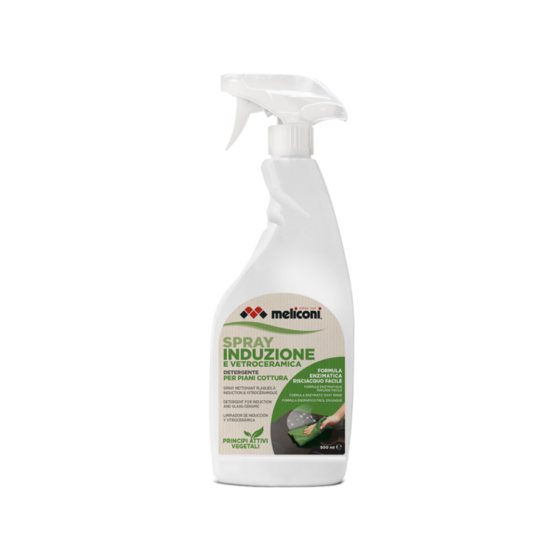 Eko sprej za čiščenje indukcijskih in steklokeramičnih kuhalnih plošč. Inovativna formula, ki temelji na specifičnem encimu in rastlinski površinsko aktivni snovi, omogoča učinkovito čiščenje in odstranjevanje vodnega kamna brez uporabe agresivnih kislin, zaradi česar je primeren za uporabo na občutljivih površinah. Aktivne sestavine na rastlinski osnovi. Zaradi posebnega encima v enem koraku odstrani madeže vode in maščobe. Zaradi visoke učinkovitosti in enostavnega izpiranja prihrani vodo in čas. Izdelano v Italiji.