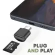 Citalnik crnih kartic, posebej zasnovan za branje vaše mikro SD / TF kartice. Zahvaljujoc adapterju USB-C enostavno upravljajte svoje podatke na katerem koli racunalniku in kateri koli napravi, opremljeni z vrati USB C. Njegova žepna velikost omogoca enostaven transport.