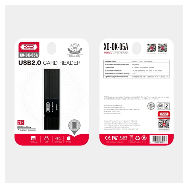 Čitalec kartic USB 2.0 XO 2v1 DK05A