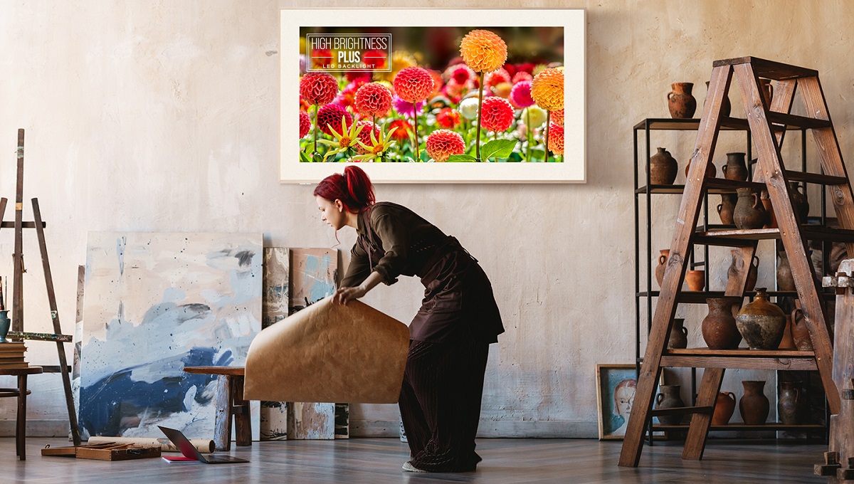Ima zelo mat antirefleksni zaslon za pravi videz stenske umetnosti.