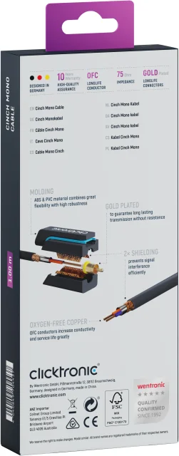 Clicktronic 70443 kabel 75Ω 1xRCA M/1xRCA M 1,0m