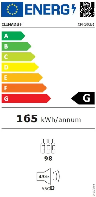 Tehnične podrobnosti vinske vitrine CPF100B1 Climadiff: