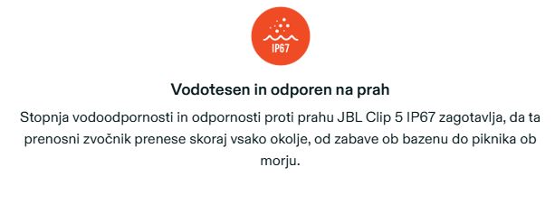 Vodoodpornost in zaščita pred prahom: IP67 certifikat omogoča uporabo v skoraj vsakem okolju, od bazena do plaže.