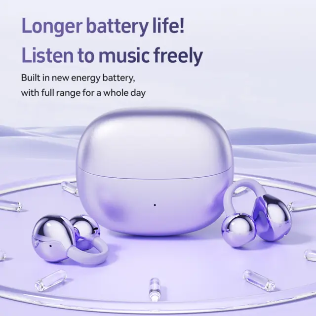 Vrhunska kakovost zvoka: Doživite neprimerljivo zvočno natančnost s temi clip-on Bluetooth slušalkami. S tehnologijo kostne prevodnosti in kakovostjo zvoka HIFI te slušalke zagotavljajo kristalno čiste visoke tone in globoke, resonančne nizke tone. Popolno za ljubitelje glasbe in avdiofile, ki iščejo poglobljeno izkušnjo poslušanja, ne glede na to, ali se vozite v službo, telovadite ali se sproščate doma. Uživajte v svojih najljubših melodijah z izjemno jasnostjo in podrobnostmi, zaradi česar je vsako poslušanje užitek. Napredna obdelava zvoka zagotavlja minimalno popačenje in optimalno reprodukcijo zvoka v širokem frekvenčnem območju.