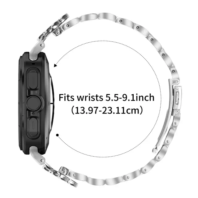 Varno in nastavljivo prileganje: Ta pašček iz nerjavečega jekla, zasnovan za varno in udobno prileganje, je enostavno nastavljiv in združljiv z uro Samsung Galaxy Watch7 47mm. Natančna izdelava zagotavlja tesno prileganje na vašem zapestju, preprečuje zdrs in zagotavlja, da vaša pametna ura ostane na mestu med katero koli aktivnostjo. Nastavljivi členi vam omogočajo, da prilagodite dolžino paščku tako, da se popolnoma prilega velikosti vašega zapestja, kar zagotavlja največje udobje in varnost. Uživajte v prilagojenem prileganju, ki dopolnjuje vaš aktiven življenjski slog s tem nastavljivim paščkom za uro.
