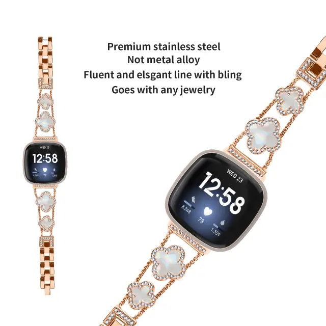 Elegantno in stilsko: Izboljšajte svojo Fitbit Versa 3/4/Sense 2 s tem osupljivim paščkom z rožnim zlatom cloverlink. Drobni dizajn doda vašemu vsakdanjemu videzu pridih elegance in prefinjenosti, zaradi česar je popoln tako za priložnosti kot za svečane priložnosti.