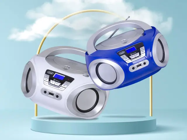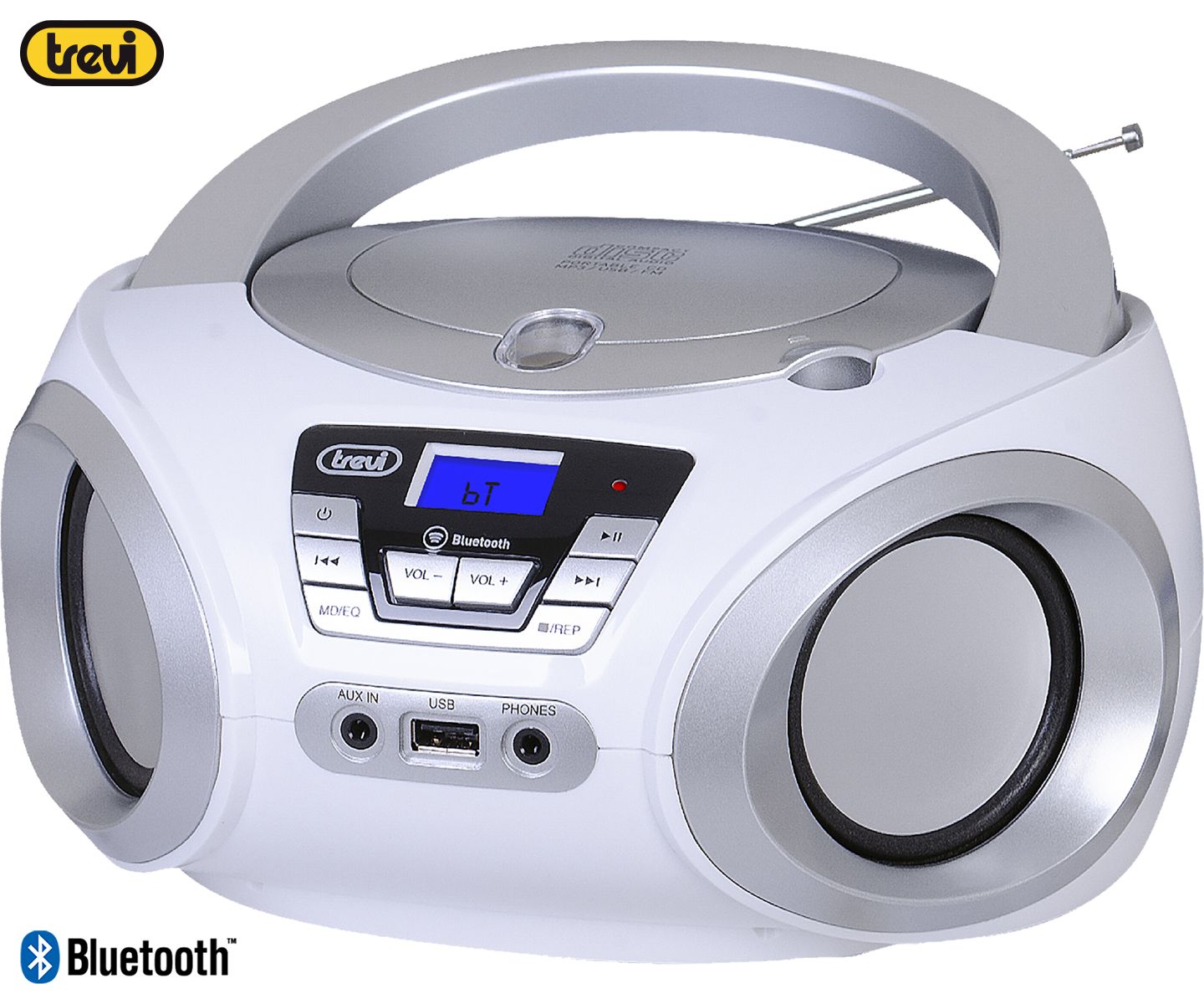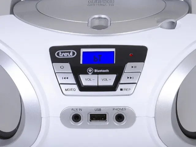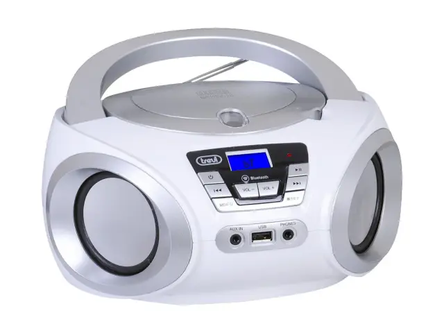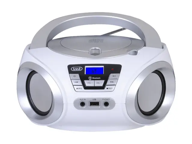 TREVI CMP 544 BT Boombox FM Radio, Bluetooth, USB, AUX, LCD zaslon, antena, radijski in CD predvajalnik bel
