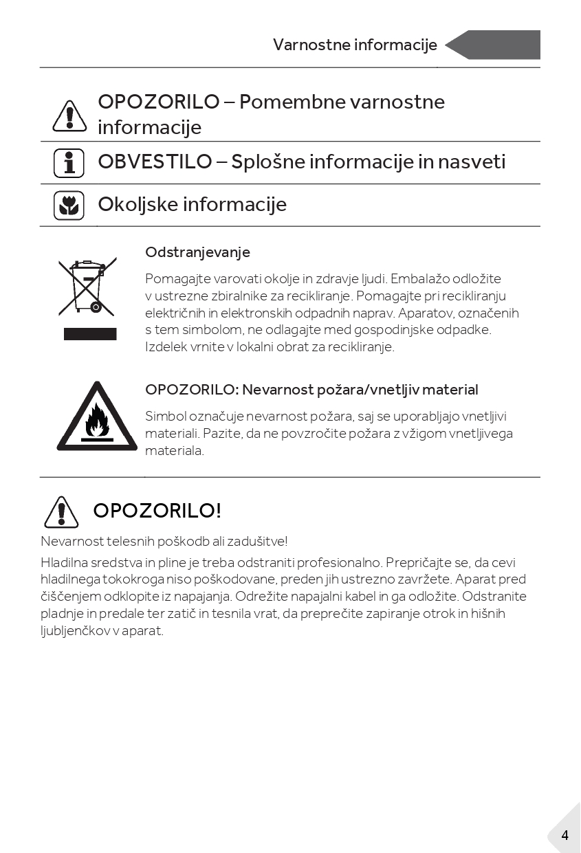 Slike o varnosti izdelka vsebujejo opozorila na embalaži izdelka in lahko vključujejo ključne varnostne informacije, povezane z določenim izdelkom.