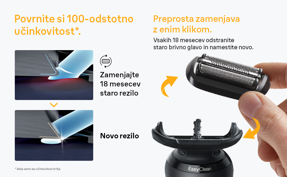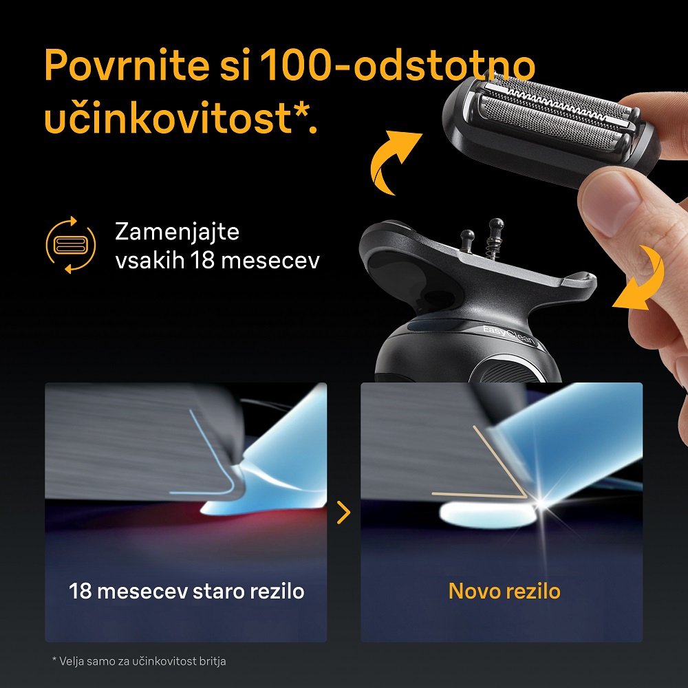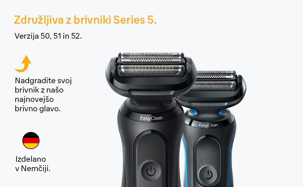 Povprečni brivnik Braun odreže šest milijonov dlak vsakih 18 mesecev. To pomeni, da se glava postopoma obrabi in vaše britje lahko postane manj temeljito in udobno. Zato Braun priporoča, da zamenjate mrežico in blok rezil vsakih 18 mesecev, saj tako ohranite kar najboljše stanje svojega brivnika. Poskrbite za svoj brivnik in on bo poskrbel za vas. Vsebina škatle: 1 x ORIGINALNA nadomestna glava za brivnik Series 5