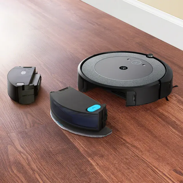 Postaja za samodejno praznjenje, Polnilna postaja, Vrečka za prah, HEPA filter, Krpa za pomivanje, Stranska krtača, Rezervoar za vodo