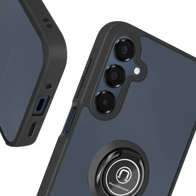 Coque pour Samsung Galaxy A16 Bague Métallique Support Vidéo, Črna