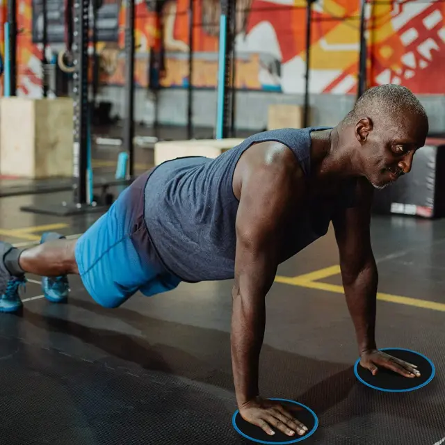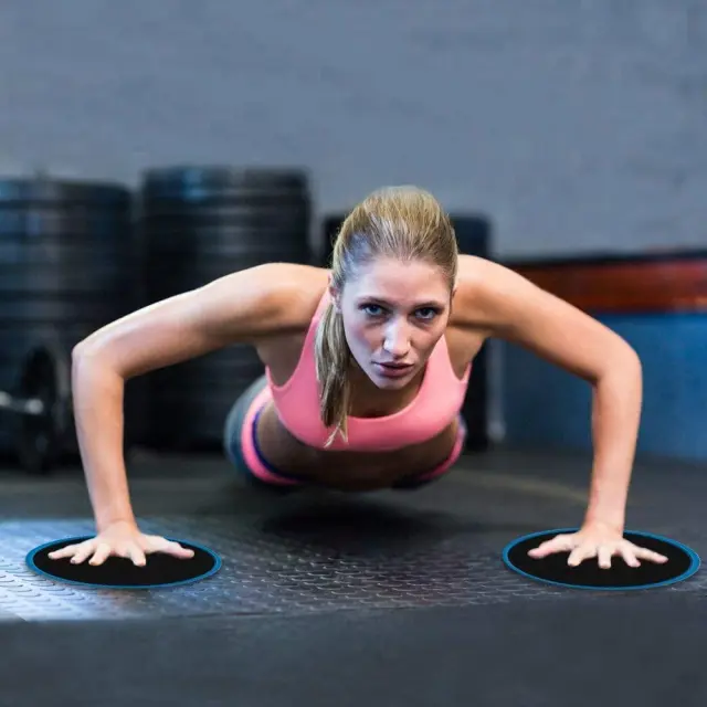 Učinkovit in nežen trening: Drsne plošče vam pomagajo trenirati celotno telo. Delajte vaje deske, počepe in drugo. Z drsnimi ploščami vaše roke ali noge nikoli ne zapustijo tal in trenirate kondicijo, ravnotežje in stabilnost v telesu.